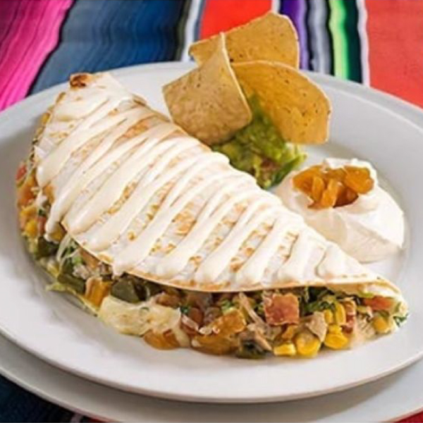 Version individual de nachos con ingredientes separados: Pollo, carne o mixtos, guacamole, frijol refrito, salsa roja, queso cheddar, sour cream, piña y crema de leche.